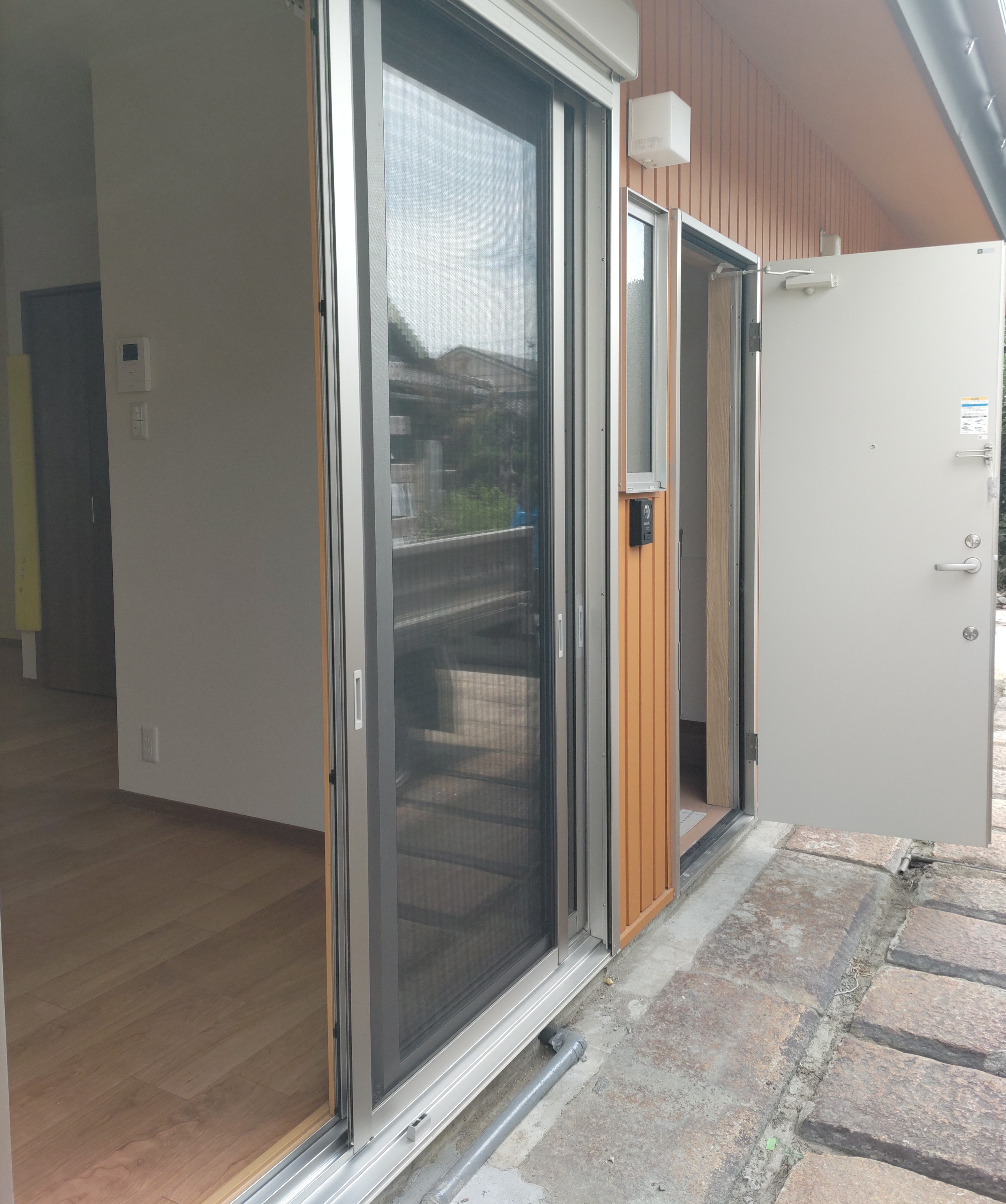 - 玄関ドアは、予算的に通常の玄関ドアでなく、アパート