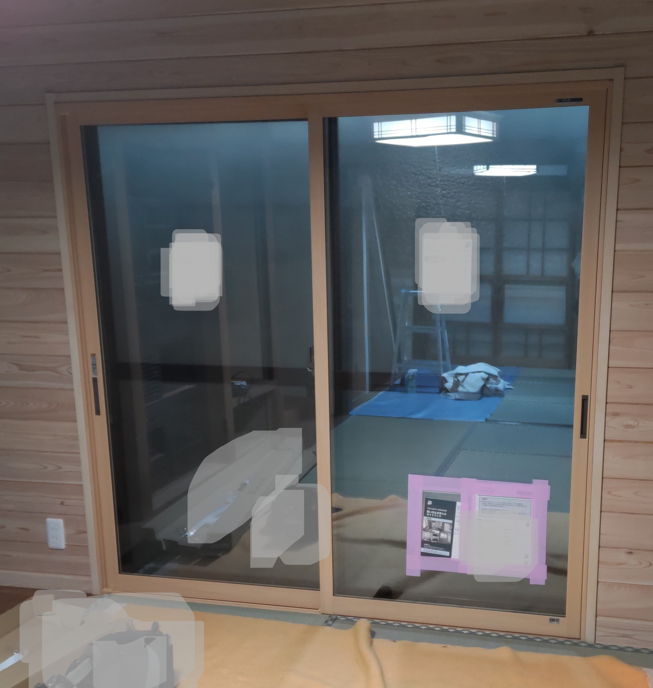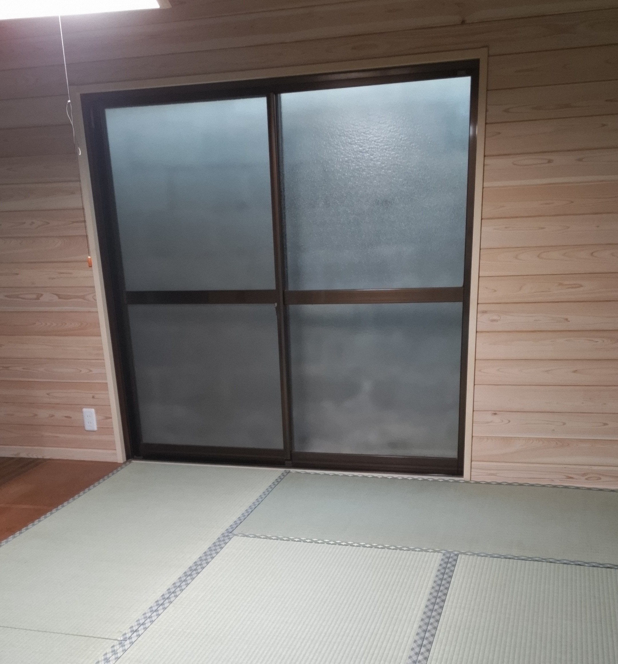 工事完了時ですが、既存の建具を再利用した仕切りが